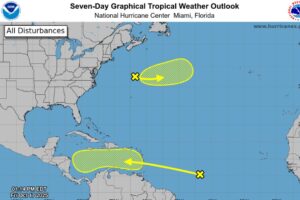 Mientras que en el Atlántico Norte, «un área no tropical de baja presión se encuentra bien fuera de la costa del noreste de los Estados Unidos. Hay una ligera probabilidad de que el sistema podría desarrollar algunas características subtropicales durante el fin de semana antes de que gire hacia el noreste sobre aguas más frías a principios de la próxima semana», añadieron aunque con probabilidades aún más bajas.