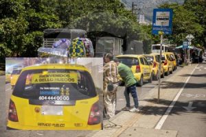 Con particulares carteles, taxistas de Bello protestan por huecos en el municipio