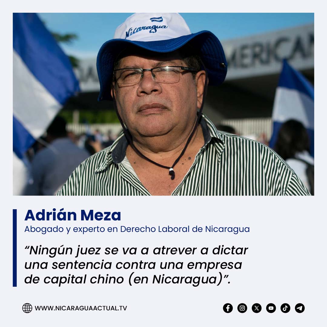 “En Nicaragua, el capital chino está gozando no solo de un paraíso fiscal, sino también de un paraíso laboral, en donde la violación de los derechos de los trabajadores nicaragüenses no tiene instancias imparciales donde puedan ser juzgadas, sancionadas y reparadas”, afirmó Meza.